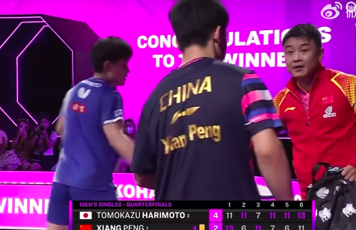 8月10日下午,在日本横滨举行的世界乒乓球职业大联盟(WTT)横滨冠军赛男子单打四分之一决赛中,中国选手向鹏2-4不敌日本选手张本智和,无缘四强。赛后出现了争议一幕,张本智和与中国男乒主教练王皓握手,但他质疑王皓握手的动作有些敷衍,没有尊重他,随后向教练吐槽。随后,张本智和接受日媒采访回应此事。