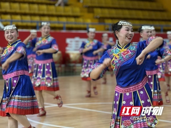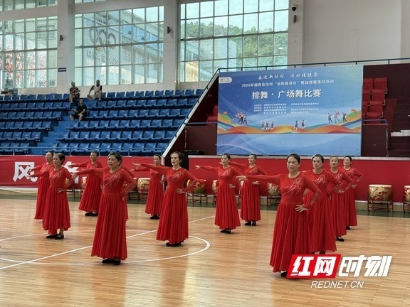 开场鼓《盛世欢歌》鼓队成员身着统一服饰,刚劲有力的鼓声引得围观居民阵阵欢呼,为活动注入满满活力。随后的排舞比赛同样精彩,数百名广场舞爱好者伴着欢快旋律起舞,队列整齐、动作舒展,湘西本土音乐和经典曲目轮番上演,不少居民跟着节拍互动,现场笑语不断。